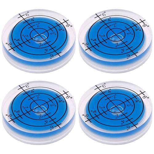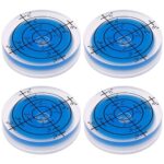 コンパクトで高精度の32mm丸型水準器。アナログメモリ付き、工具取付型、透明なデザイン。卓上型計測器として安全性を重視し、4個入りのブルータイプ。