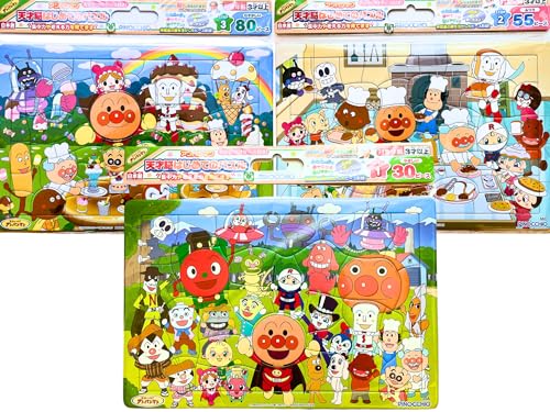 アガツマのアンパンマン天才脳はじめてのパズルは、30ピース(アンパンマンとなかまたち)、55ピース(パンこうじょう)、80ピース(おかしのくに)のセットで、小さなお子様の認知能力を育む楽しいパズルです。