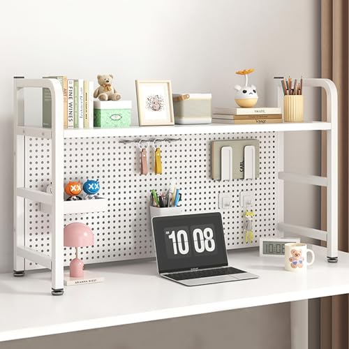 机上ラックは、収納に最適な卓上本棚で、鉄製の多機能デザイン。穴付きの有孔ボード付きで、サイズは高さ68cm/98cm、幅55/75/95/115/135cmから選べます。学校やオフィスで使いやすい組立式。