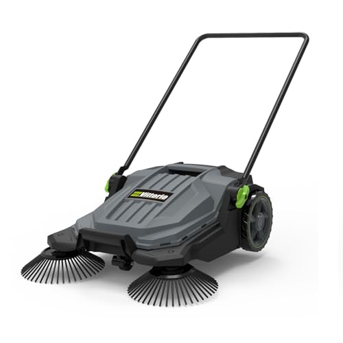ヴィットリオ ZSP-20は手押し式清掃機で、電源不要で埃や落葉を簡単に回収できます。サイズは670mm幅、690mm奥行、270~808mm高さ、清掃幅は650mm、収集容量は20Lです。