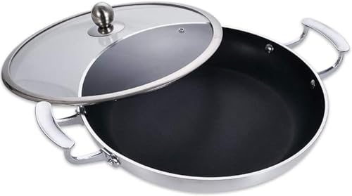 Sadiorのパエリアパンは、アルミニウム合金製でノンスティックコーティング。口径28cmのフライパンはIH対応で、全ての熱源に適しています。お手入れも簡単で、揚げ蓋付きが便利です。