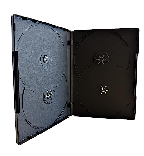 MediaPack4Allの14mmマルチ4ディスクオーバーラップケースは、CD/DVD用のブラックストレージケースです。コンパクトで効率的にメディアを保護・収納できます。