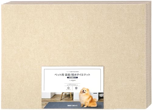 Amazon提供のペット用吸着・撥水タイルマットは、45cm×60cmの横長タイプで、2畳用(12枚入り)。モカベージュの優しい色合いが特徴で、インテリアにも馴染みやすく、ペットの快適な生活空間をサポートします。