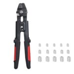 ibubu圧着ペンチは、φ0.1mm-φ2.2mm対応のワイヤークランプカッターです。ワイヤーストリッパーやワイヤーロープカッター機能もあり、8文字型アルミスリーブ50個付き。また、手軽に圧着作業が行えます。