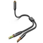 オーディオケーブル3.5mm 4極分配ケーブルの詳細。メス-オス*2のマイク変換ケーブル、Hi-Fi音質、ナイロン編み、高耐久、24K金メッキコネクタ、プラグStep-Down設計、長さ25CM。