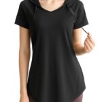 Ranmy Stageの『くびれシルエット』ヨガウェアは、レディース向けの長め半袖トップス。フード付きで速乾性があり、スポーツやジム、トレーニング、ランニングに最適。カラーはブラック、サイズはMです。