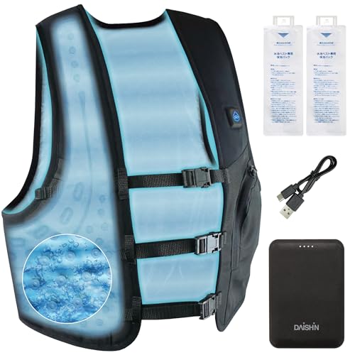 大進のひんやり水冷ベストDXは、フリーサイズで快適な着心地を提供。モバイルバッテリー付きで暑さ対策に最適。アウトドアや作業着としても活躍する冷却ベストです。