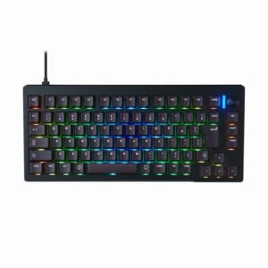 iClever G06 ゲーミングキーボードは、91キーのテンキーレス、日本語配列、茶軸メカニカルで、有線接続。80%サイズ、24種類のカスタマイズ可能なバックライトを搭載し、ゲームやオフィスに最適です。