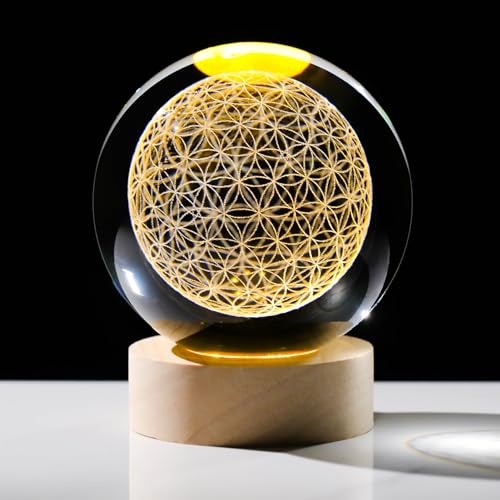 Arikyrist 3D刻印フラワーオブライフクリスタルボールは、レーザー刻印された美しいデザインが特徴。神聖幾何学をテーマにしたホームデコレーションやギフトに最適です。