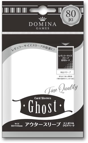 Domina Gamesのゴーストスリーブは、80枚入りのカードスリーブです。高品質な素材で、カードを傷や汚れから守り、透明度が高く視認性も抜群です。ゲームプレイをより快適に楽しむための必需品です。