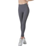 Yomomentの夏用ヨガパンツは、蝶結びデザインがかわいく、吸汗速乾、ストレッチ性に優れています。ヒップアップ効果があり、ヨガやピラティス、ランニングに最適なダークグレーのレギンスです。