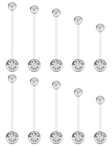 Rcsinxcto 14G クリア へそリング ピアス ジュエリー 14ゲージ バイオフレックス プラスチック アクリル 妊娠 ロング へそリング へそリング カーブ バーベル ピアス ジュエリー 女性用 リテーナー 10mm-38mm バー, プラスチック, キュービックジルコニア