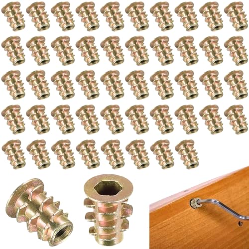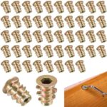 埋め込みナット M4x10mmの約50個セット。ねじ込みタイプの亜鉛合金製で、六角穴付きボルトとの相性抜群。台形デザインによる安定構造が特長。家具や木工DIYに最適な接合金具です。