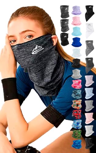 男女兼用のフェイスカバー・マスク。接触冷感でひんやり感を提供。洗えるUVマスクとして、ゴルフやテニス、ランニングなどに最適。3枚または5枚入りのまとめ買い可能。日焼け止め効果あり。
