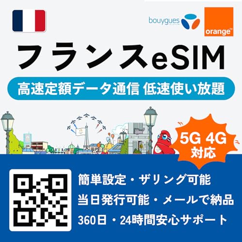 【フランス eSIM】5G 4G-LTE 高速定額データ通信 低速使い放題 当日発行可能 フランス プリペイド simカード パリ eSIM フランス sim オリンピック SIMカード LINEで24時間サポート (7日間 5GB高速データ)の製品情報