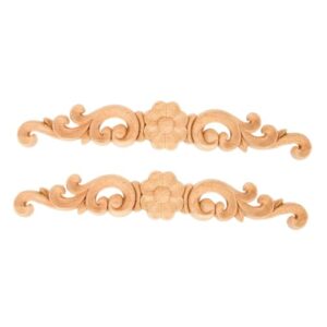 Happyyami 2個 木製アップリケ 家具用装飾転写材 木彫りデ 無垢材使用 木製トリム モールディング オンレイ クラウンモールディングコーナーブロック デコレーション パーツ