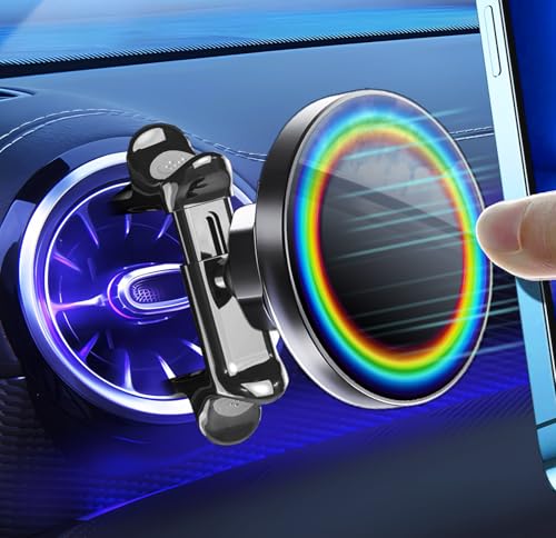 LIFMAGICのマグセーフ車載ホルダーは、丸型エアコン吹き出し口に対応し、超強磁力で安定した固定を実現。4.7-7.0インチのスマートフォンに対応、さまざまな車種で使用可能。