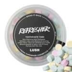 LUSHのリフレッシャーは、フルーティライム、オレンジ、レモンの風味を楽しむ歯磨き用タブレットです。セルフホワイトニング効果があり、口臭対策にも最適。便利な50gパッケージで、爽やかな口腔ケアが実現します。