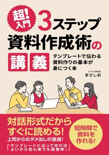 『超!入門】3ステップ資料作成術の講義』は、AIにはできないコンサルの実践に基づく資料作成法を解説した教科書です。デザインやイラストに頼らず、資料作成の本質が理解できる内容が特徴です。