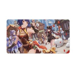 ゲーミングマウスパッド 大型 萌え キャラクター柄 原神 イラスト 胡桃 刻晴 香菱 集合絵 【天然ゴム素材 エッジ周辺強化】 光学式マウス対応 精準感UP 自由操作 飾りマット デスクマット 防水防塵 ズレない 水洗い オフィス ホーム用 40X75cm