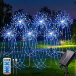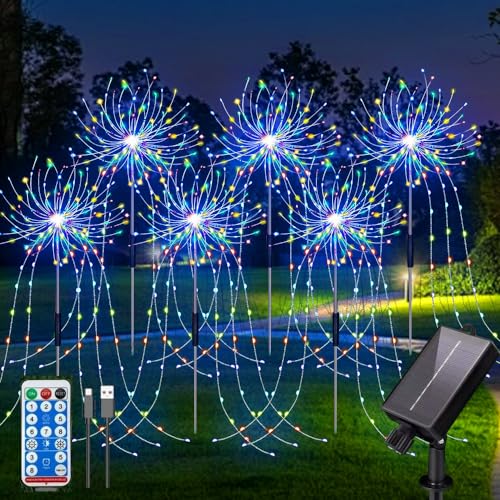 YZYOE 6パック720LED屋外ソーラー七色花火ライトは、リモコン付きで防水性能を持ち、USB充電も可能。8パターンのDIYパスライトで庭を美しく飾ります。