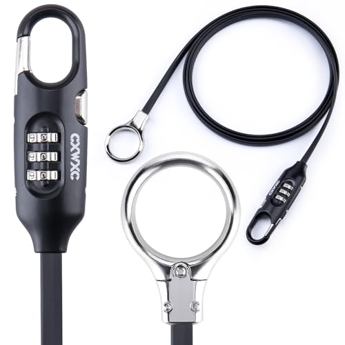 CXWXCの自転車ワイヤーロックは、軽量かつコンパクトで、3桁ダイヤル式。長さ1.8mの地球ロックで、盗難防止に効果的。カラーはブラックで、持ち運びに便利です。