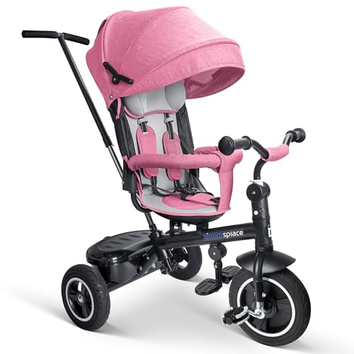 Duomspiaceの子供三輪車は、1~6歳向けのかわいいピンク色のベビーカーです。手押し棒が付いており、安全に乗れる乗用玩具。出産祝いにも最適です。