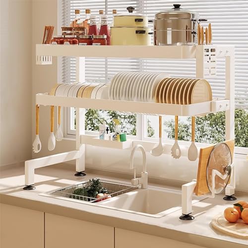 水切りラックは、シンク上に設置できる2段式の食器乾燥機です。幅95cmの大容量で、ホワイト色のデザインがキッチンに調和します。省スペース設計で、効率的に食器を収納できます。