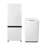 Hisenseの新生活応援セットには162L冷蔵庫(HR-D16F)と4.5kg洗濯機(HW-K45E)が含まれています。白を基調としたデザインで、コンパクトなサイズが新生活に最適です。