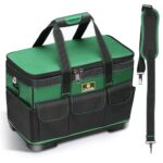 Drado 工具バッグは、撥水処理が施されたダークグリーンのスタイリッシュなデザイン。耐久性に優れ、大容量で使いやすく、工具の整理や持ち運びに最適です。