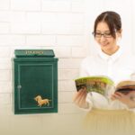 鍵付きの壁掛け郵便ポスト。おしゃれでアンティークなデザイン。北欧スタイルのメールボックス。犬のモチーフと緑色が特徴で、玄関周りを彩ります。