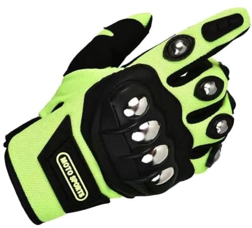 タッチパネル対応の蛍光イエロー防風プロテクショングローブ。バイクやサイクリングに最適なフリーサイズ。手のひら部分には滑り止め加工が施され、グリップ力も向上。