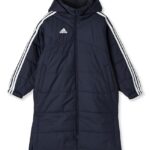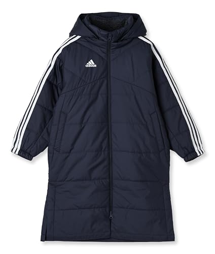 アディダスのキッズ用ロングコート、3ストライプスボア仕様。サイズ130、色はレジェンドインク。暖かさとスタイルを兼ね備えた必需品です。