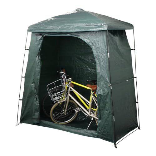 Bonarca サイクルハウスは簡易的な自転車置き場で、1台または2台収納可能。サイズは奥行き100cm、横幅200cm。ガレージテントとしても使用でき、屋根付き収納で整頓された駐輪場を提供します。