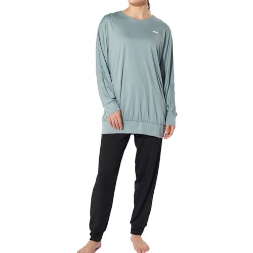 フィラの水陸両用マルチウェア上下セット。フィットネスやリラックスに最適なデザイン。軽量で動きやすく、様々なアクティビティに対応。312060モデル。