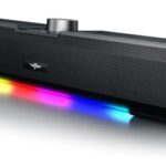 PCスピーカー、RGBサウンドバー。USB電源&3.5mm AUX接続対応。12W出力、ブラック。PC、モニター、ゲーム機、ラップトップに最適。
