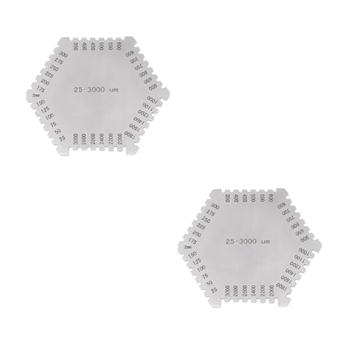 六角形ウェットフィルムコームは、25-3000μmの厚さ測定が可能な防錆ステンレススチール製。ペイントやトリミング作業に最適なゲージです。