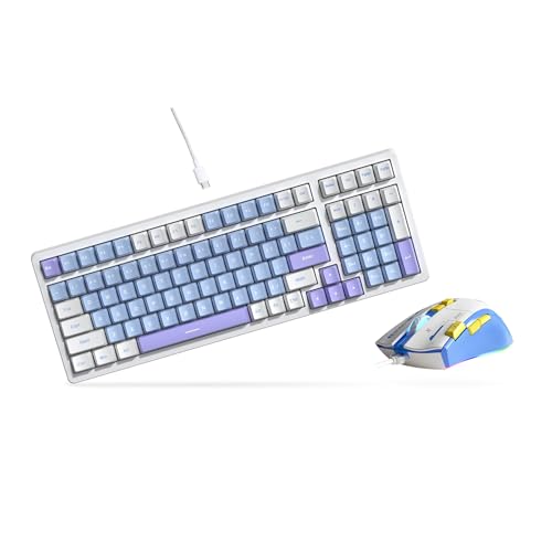 Qisanのゲーミングキーボード&マウスセットは、有線メカニカルキーボードと7200DPIのマウスが特徴。RGBバックライト付きで、USレイアウト、ブルースイッチ搭載。色はホワイト、ブルー、パープルから選べます。