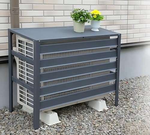 おしゃれなアルミ製エアコン室外機カバー。日よけや雪よけに最適で、通気性や防雨機能も備えています。軽量でコンパクトなデザインが特徴。ガーデンや庭にぴったり。