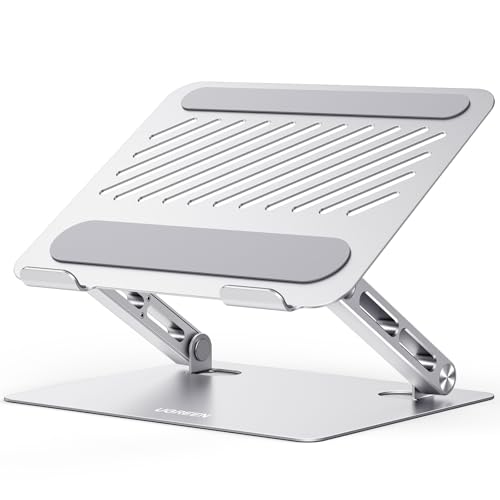 UGREENのノートパソコンスタンドは、耐荷重5KGで17.3インチまで対応。人間工学デザインにより姿勢改善、折りたたみ式で安定性も良好。放熱性が高く、高さと角度が調整可能です。