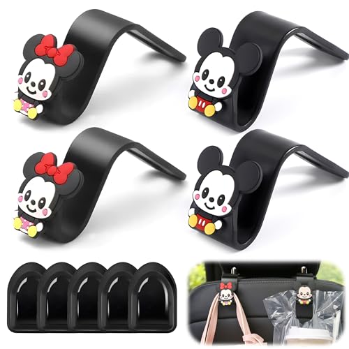 KRGNPLE 車用フック4個入りは、ミッキーとミニーのデザインで、携帯式のキーやケーブル収納に最適。黒い小さな粘着フック5つ付きで、インドアでも多機能に使えます。