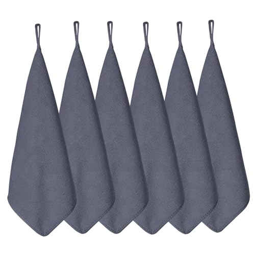 HOOMCOOMのキッチンタオルは、6枚セットのループ付きふきん。30x30cmのマイクロファイバー製で、厚手生地、吸水性、速乾性に優れ、衛生的な抗菌仕様。グレー色で防臭効果もあります。
