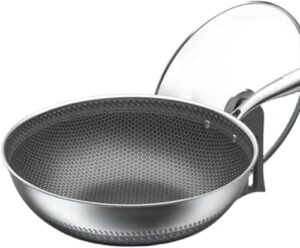 フライパン ドイツ製 ステンレス フライパン 深型 厚型 油煙が出ない ガラス蓋 多用途 ハンドル付きスティックパン すべてのストーブ 調理器具 家庭用キッチン用品に適しています ステンレス製中華鍋 家庭用 ノンスティック フラットボトム コーティングなし 炒め鍋 IH対応 ガスコンロ (36cm,ふた付き)