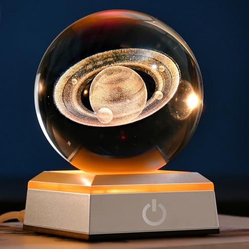 ZRENJHUS 3D土星クリスタルボールは、美しい惑星モデルで、LEDライトベースが付き、幻想的なナイトライトとして使用可能。宇宙好きや科学教育に最適なギフトです。
