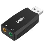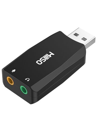 MillSO USBオーディオ変換アダプタは、USBを3.5mmに変換し、イヤホンやマイクを接続可能。AMSR、YouTube、TikTok、レコードプレーヤー、電子ピアノに対応。ブラックのデザイン。
