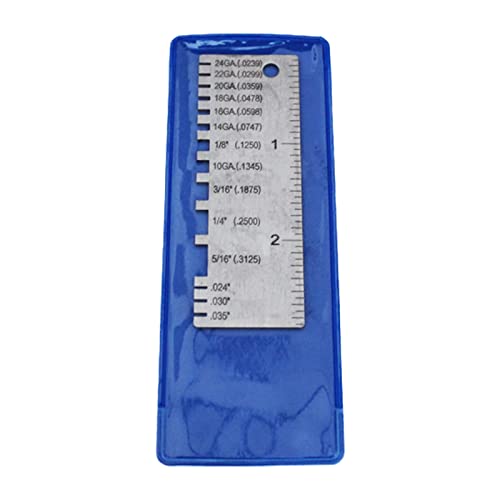 ステンレス製のポータブル厚さ計。金属板や電線の厚さを簡単に測定可能。溶接ゲージとしても利用でき、精度の高い測定工具です。