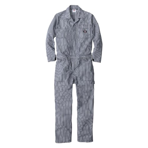 ディッキーズのライトストレッチヒッコリー長袖ツナギ(D-7106)は、春夏向けの薄手軽量作業服です。UPF50のUVカット機能付きで、男女兼用。コーコス製でカラーはネイビー、サイズは5Lです。