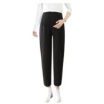 マタニティパンツはストレートデザインで九文丈、薄手素材が特徴です。ウエスト調整機能があり、着痩せ効果があります。普段着からオフィスまで幅広く対応します。
