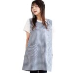 NISHIKIのエプロン(レディース)は、保育士や介護士向けで、サイドボタン仕様。綿ポリ素材で軽量、速乾、シワになりにくく動きやすいデザイン。ポケット付きでおしゃれで可愛い横開きスタイル。カラーはネイビーギンガムのML/LLサイズ。