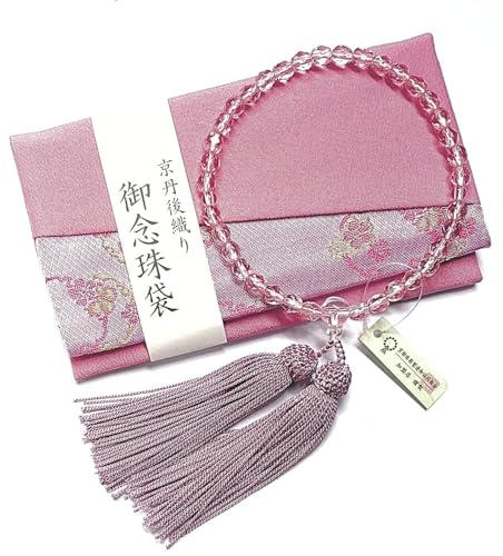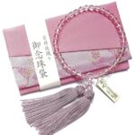 うぐいす念珠は女性用のピンク色で、新カットの切子加工が施されています。数珠袋付きで、片手珠数として使え、葬式や法事、墓参りなど、全ての宗派に対応した京念珠です。